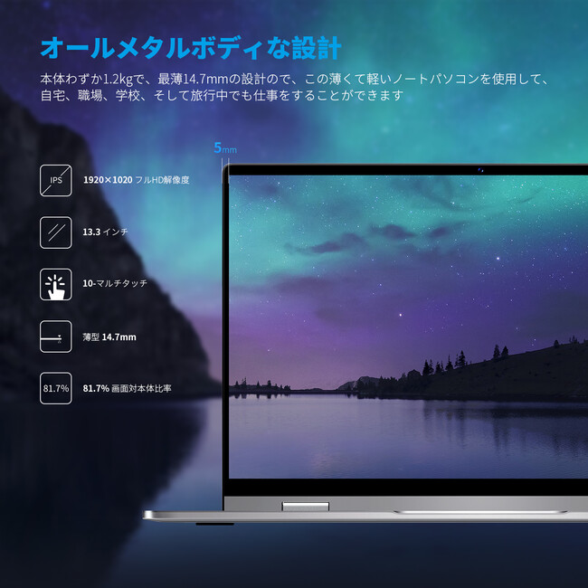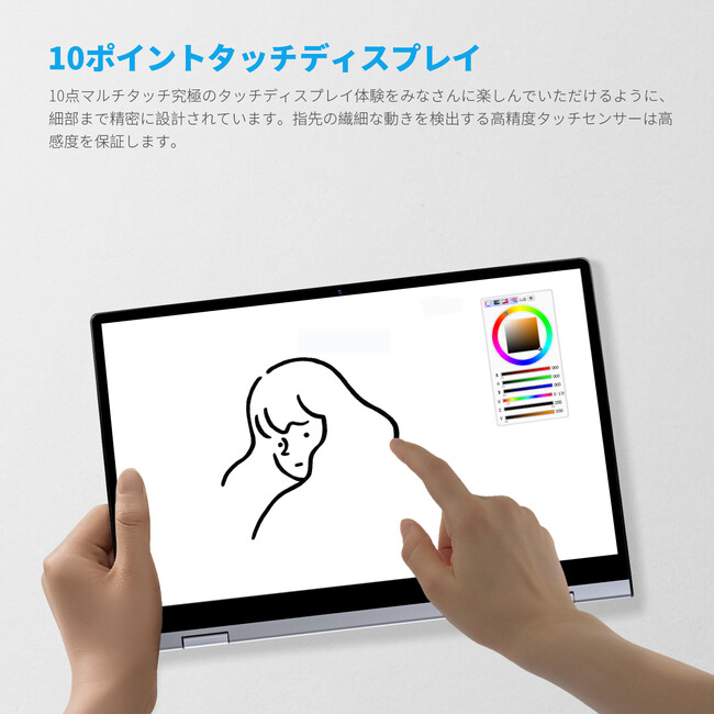 BMAX Y13は360°コンバーチブルタッチスクリーンを採用し、ノートパソコンとタブレットの形式を自由に切り替えることができます。