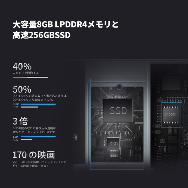 そして、256GB SSDを利用して、お気に入りのいかなるコンテンツを保存することができます。