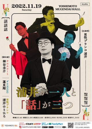 この度、東京・渋谷からお笑いのトレンドを発信する劇場「ヨシモト∞ホール」は、オムニバス一人コントライブ『浦井が一人と「話」が三つ』を2022年11月19日(土)に開催いたします。