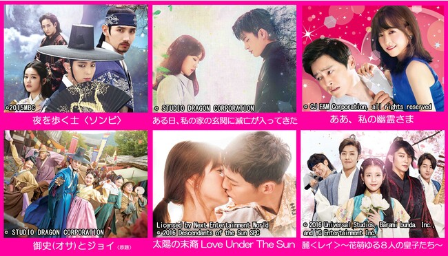 CS放送局「衛星劇場」では、10月・11月に韓ドラファンお馴染みの人気作6本をアンコール一挙放送! イ・ジュンギ、チャンミン(東方神起)の「夜を歩く士〈ソンビ〉」、ソ・イングク&パク・ボヨンの「ある日、私の家の玄関に滅亡が入ってきた」、チョ・ジョンソク&パク・ボヨンの「ああ、私の幽霊さま」、テギョン(2PM)&キム・ヘユンの「御史(オサ)とジョイ」、ソン・ジュンギ&ソン・ヘギョの「太陽の末裔 Love Under The Sun」、イ・ジュンギ&IUほか人気俳優勢ぞろいの「麗<レイ>〜花萌ゆる8人の皇子たち〜」と、いずれも韓国本国のみならず日本でも人気を集めた作品ばかりです。このチャンスをお見逃しなく!
