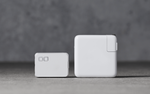 サイズはマルチポートポートの充電器の中でも、極限まで小さい卵サイズを実現。コンセント使用時にも、厚みを28mmに抑えることで他の充電器との干渉を少なく設計しています。