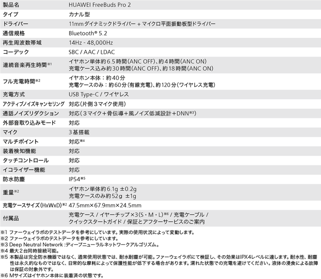 『HUAWEI FreeBuds Pro 2』 の主な仕様