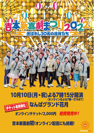 吉本新喜劇では、10月10日(月・祝)に『吉本新喜劇まつり2022〜選ばれし30名の座員たち〜』を開催いたします。