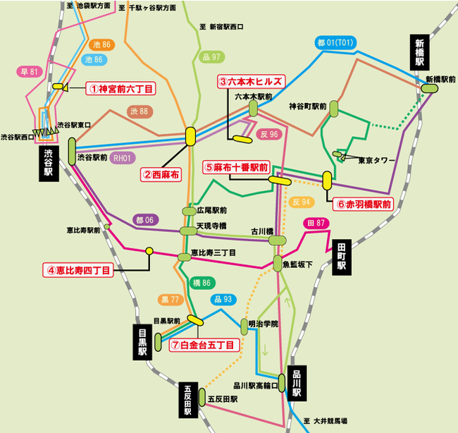 7.白金台五丁目(黒77、橋86、品93系統)