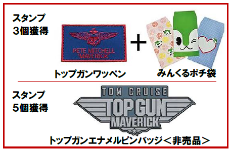 スタンプ3個獲得:抽選でトップガンワッペン+みんくるポチ袋(3種各1枚セット)をプレゼント(36名様)