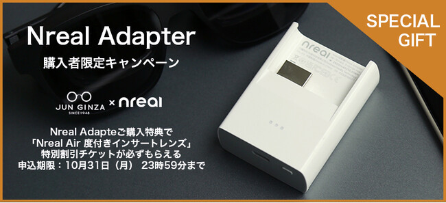 Nreal Adapterは、以前より10月1日(土)より一般販売を開始することを告知しておりましたが、販売開始当日から連日入荷が注文数に追いつかず、一時品切状態が続いてしまいました。本キャンペーンはお客様にお待ちいただいたことに対するお詫びと感謝の気持ちを込めて、急遽実施することを決定しました。キャンペーンは 10月31日(月)まで実施します。当社はこれからもお客さまへのサービス向上や充実に取り組み、お客さま満足度の一層の向上を目指してまいります。