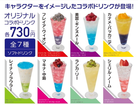 『マクロスΔ』『マクロスF』の登場キャラクターをイメージしたコラボドリンクを7種販売。