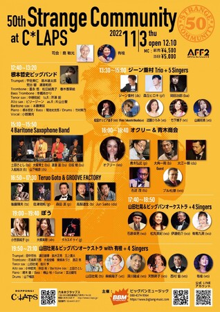 ビッグバンミュージック『50th Strange Community』の開催が決定! 2022年11月1日(火) :KEYSTONE CLUB 東京(東京都港区) 2022年11月3日(木・祝):六本木クラップス(東京都港区) チケットはカンフェティ(運営:ロングランプランニング株式会社、東京都新宿区、代表取締役:榑松 大剛)にて発売中です。