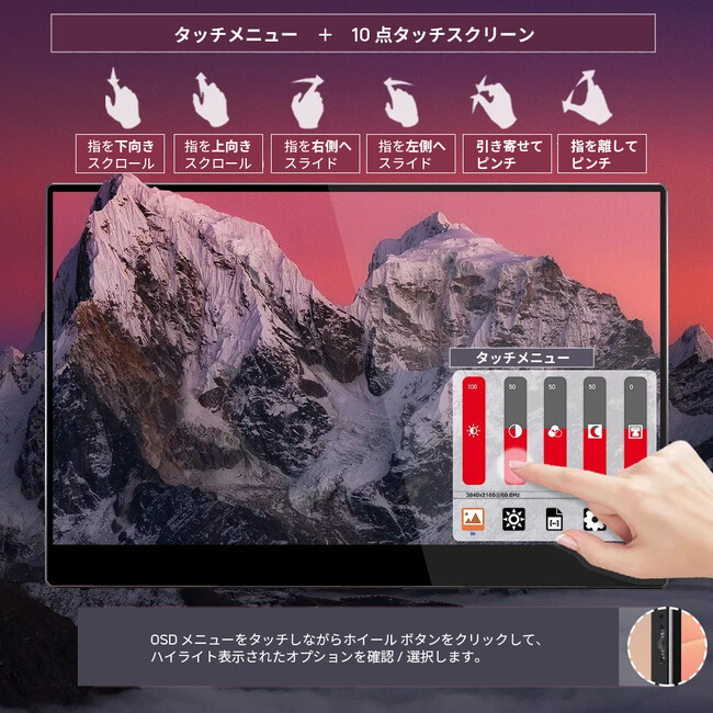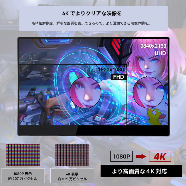 4K対応3840 x 2160ポータブルIPS液晶ディスプレイ