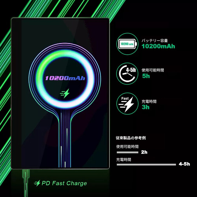 10200 mAh ポリマーバッテリー 45W急速充電