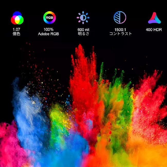 4K, 3840(RGB)×2160, UHD, 100% DCI-P3 Cinematic Color Gamut,1.07B (8-bit+FRC)