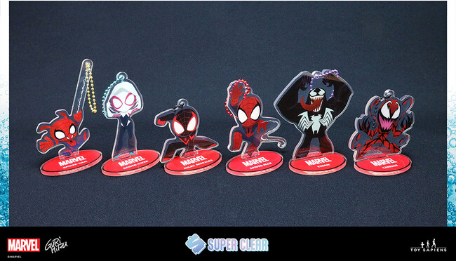 「トイサピエンス」では、日本のスタッフによる日本のファンのために考え抜かれたオリジナル企画に着手し、USトイと日本雑貨の感覚をクロスしたユニークでフレッシュなラインナップを展開しています。 「トイサピエンス」のオリジナル企画第5弾となる「スーパークリア」は、1枚でアクリルカード、アクリルフィギュア、アクリルキーチェーンの3通りが楽しめるシリーズです。アクリルカードのサイズは高さ約15センチ、幅約10センチ。それぞれキャラクターに合わせたカラーのボールチェーンが付属します。