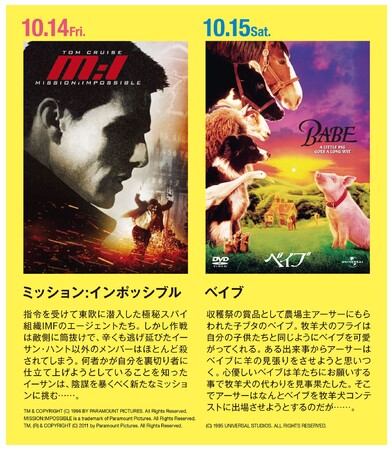 グランパーク初の試み! グランパークタワーのエントランスに人工芝をひいて、くつろいだ空間で映画をご鑑賞いただきます。上映作品はグランパークが完成した25年前に公開された『ミッション:インポッシブル』と『ベイブ』です。クッション等があると快適です。(周りのお客さまの鑑賞の妨げにならないようご配慮をお願いいたします)