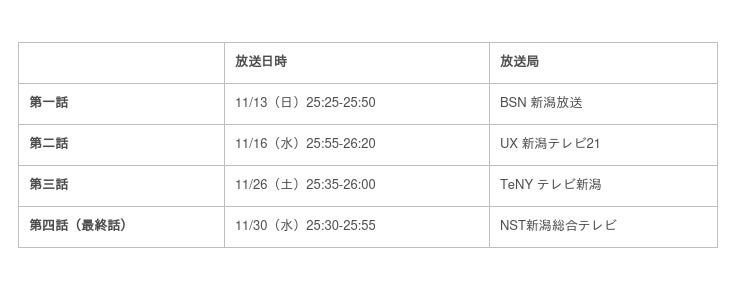 この企画の実現には、多数の協力者の皆さんのご尽力が不可欠でした。この企画に協力してくださった、俳優陣やその所属事務所の皆さん、制作プロダクションをはじめとするスタッフ、関係者の皆さん。何より、大掛かりな撮影を受け入れてくださった自治体の皆さんや、地域の協力者の皆さん。そして、史上初とも言える民放4局での連携放送を検討くださり、決定してくださった新潟県内民放4局の皆様には本当に心より感謝を申し上げます。民放局が垣根を超えて放送するということは、挑戦的な試みです。しかし、この企画に協力してくださる決断を頂けたことを、改めて感謝申し上げます。