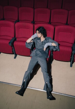 映画館でのルック撮影を通して、ヒトが表舞台に立てる多様性の時代と、その裏にある複雑で少しものうげな気持ちを、MIKAGE SHINとSONSHINBALのコラボレーションで表現。
