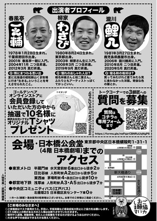 出演者:春風亭一之輔、柳家わさび、瀧川鯉八