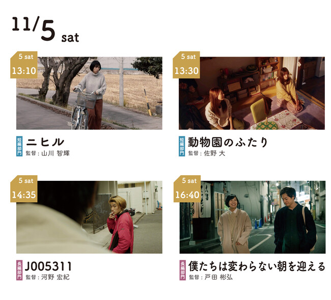 各日の最後には福井映画祭で過去に入選・受賞された二人の監督の劇場公開作品を招待作品として上映。(招待作品の配信はいたしません。)