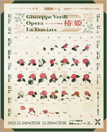 百合の会主催、『オペラチックナイトVol.9 オペラ「椿姫」』が2022年12月24日 (土) 〜2022年12月25日 (日)にシアターX(シアターカイ)(東京都墨田区両国 2-10-14両国シティコア内)にて上演されます。 チケットはカンフェティ(運営:ロングランプランニング株式会社、東京都新宿区、代表取締役:榑松 大剛)にて発売中です。