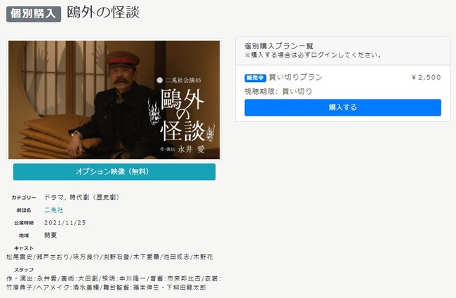 さらに、二兎社や地蔵中毒、日本のラジオなどサブスク配信では取り扱いのない人気劇団の作品も多数取り扱っております。