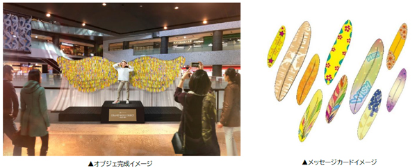 大阪文化服装学院の学生たちによってデザインされたメッセージカードに、来街者・就業者の皆様から「WISH(希望・願い)」を込めたメッセージを記入いただき、ご自身でオブジェに飾り付けていただく参加型イベントを開催します。まちに訪れる一人ひとりの皆様と共に創り上げる、世界に一つだけのオブジェが期間限定で登場します。