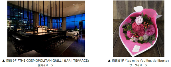 グランフロント大阪ショップ&レストランの対象店舗で5,000円以上(税込・合算可)のお買い物やお食事をされたレシートの写真を撮影し「グランフロント大阪 ショップ&レストラン」LINE公式アカウントよりご応募いただいたお客様の中から抽選で、南館9F「THE COSMOPOLITAN GRILL|BAR|TERRACE」ペアディナーチケットや、南館B1F「les mille feuilles de liberte」ブーケ、もしくはアレンジメントのプレミアムな賞品をプレゼントいたします。