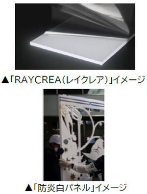 ライティングショーで浮遊する階段を行き交う不思議な足跡などの幻想的な演出は、日東電工株式会社が開発した最新技術「RAYCREA(レイクレア)」を使用することで実現しました。「RAYCREA(レイクレア)」は、新しい光の表現を可能にする光制御技術で、ガラスやアクリル板に「RAYCREA(レイクレア)」のフィルムを貼付し、パネルの端部にLED光源を設置することで、フィルムを貼付した面全体を光らせることができます。※日東電工株式会社HP: https://www.nitto.com/jp/ja/products/raycrea/