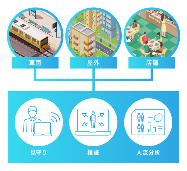 LED-AIはソフトバンク株式会社を販売パートナーとし、鉄道事業者の取り組みを支援します(※)。さらには小売、病院、学校や屋外などのさまざまな活用シーンに展開していく予定です。以上のように鉄道車両内への設置による防犯や事件・事故検証への活用の他、店舗や施設などにおける防犯・見守り・人流分析などへの活用を目指しています。未来のLED照明として、生活を照らすだけでなく、人々の安心安全や利便性の追求と企業のデジタルトランスフォーメーション(DX)に貢献して参ります。