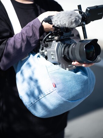 バッグの中に撮影で使う機材を入れて現場まで行き、到着したらカメラを取り出し、その代わりに着てきた上着を丸めてバッグの中に入れれば、あーら不思議、『シネサドル』になる。そんなことを考え、廃材になったデニムをアップサイクルしつつ、現場でも使い込んで自分なりの味を出していけるよう、デニム生地の『シネバッグ』を作りました。是非お試しいただけると嬉しいです。