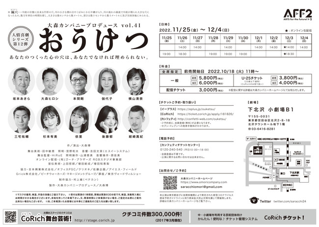 大森カンパニープロデュース 人情喜劇シリーズ第12弾『おうけつ』チケット好評発売中!
