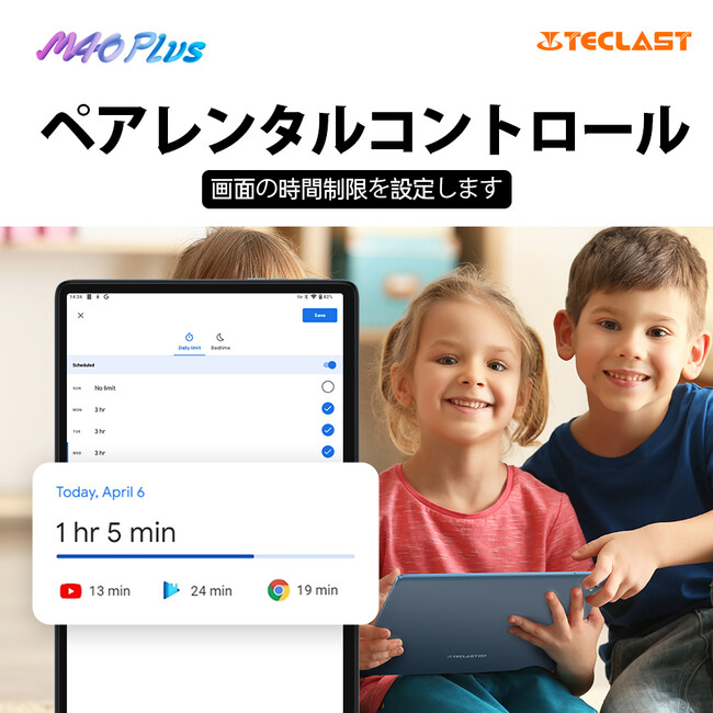 子供がタブレットの利用時間の長さおよびアプリの選択など、保護者の方々が悩んでいる問題点に対し、新しい子供の見守りアプリを開発した。タブレットの使用時間やアプリの選択などの問題を効果的に管理することができ、タブレットに学習と娯楽のより良いバランスを持たせる。