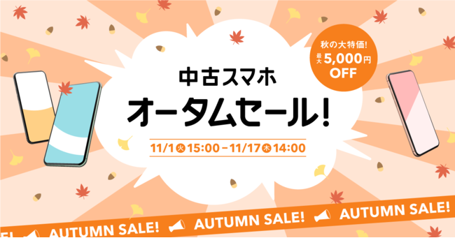 中古スマートフォン販売の「にこスマ」、秋の大特価オータムセールを2022年11月1日(火)15時から開催