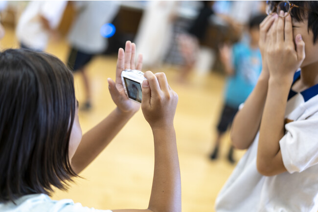 授業では、子供たちがそれぞれ「感情を表現している様子」を撮影したり、撮影した写真を見て感想を言い合うなど、いつもの日常をカメラを通して切り取ることで違う見え方があることを学びました。