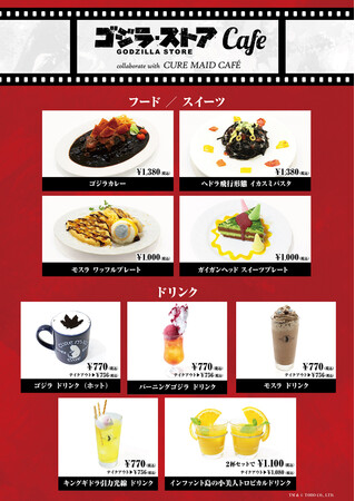 ゴジラやモスラ、ガイガンなどをイメージしたドリンクやフード、スイーツなどのコラボメニューをご提供いたします。