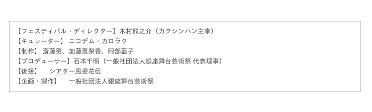 企画・制作: 一般社団法人銀座舞台芸術祭