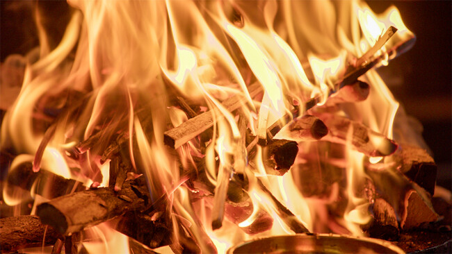例えば護摩供の行われた堂内は薄暗かったので本来は照明を焚いて撮影をしますが、今回は照明は付けず、外光と炎の明かりだけで撮影を行いました。その場の明かりだけで撮影することで余分な光が入らず、炎のゆらめき、僧侶の息遣い等、最大限に感じ取れるシーンとなりました。