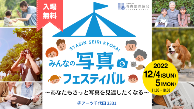 一般社団法人写真整理協会(代表理事:浅川 純子)は、12月5日の「アルバムの日」に合わせて、12月4日(日)、5日(月)の2日間、アーツ千代田3331(東京都千代田区)にて「みんなの写真フェスティバル2022」を開催いたします。 一般社団法人写真整理協会では「写真整理」を軸に、昔のアルバムや写真プリントからパソコンやスマホの中の写真データまで、写真を眠ったままにせずに「写真を見返して楽しむ」ことが出来る世界を作っていきたいと考えています。写真整理は、整理収納や終活などの「片付け」、アナログから以降が進む「デジタル」、そして人を支える思い出である「写真」を3つの要素とした、今求められる古くも新しくもある分野です。今回の「みんなの写真フェスティバル2022」は写真整理協会として初めての試みとなりますが、写真整理アドバイザー※の方々をはじめ、協賛企業様、一般の方々にもご参加いただき、写真整理の大切さやノウハウ、そして整理した写真をカタチにする体感をする2日間にしたいと思います。皆様のご来場をお待ちしています。