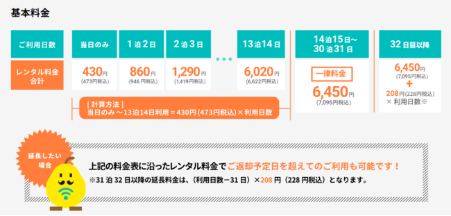 詳しくは『縛りなしWiFi』短期レンタルプランサイトをご確認ください。