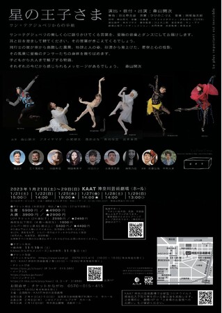 KAAT DANCE SERIES『星の王子さま サン=テグジュペリからの手紙』が2023年1月21日 (土) 〜2023年1月29日 (日)にKAAT神奈川芸術劇場<ホール>(神奈川県横浜市中区山下町281)にて上演されます。 チケットはカンフェティ(運営:ロングランプランニング株式会社、東京都新宿区、代表取締役:榑松 大剛)にて11月12日(土)10:00より先行発売開始です。
