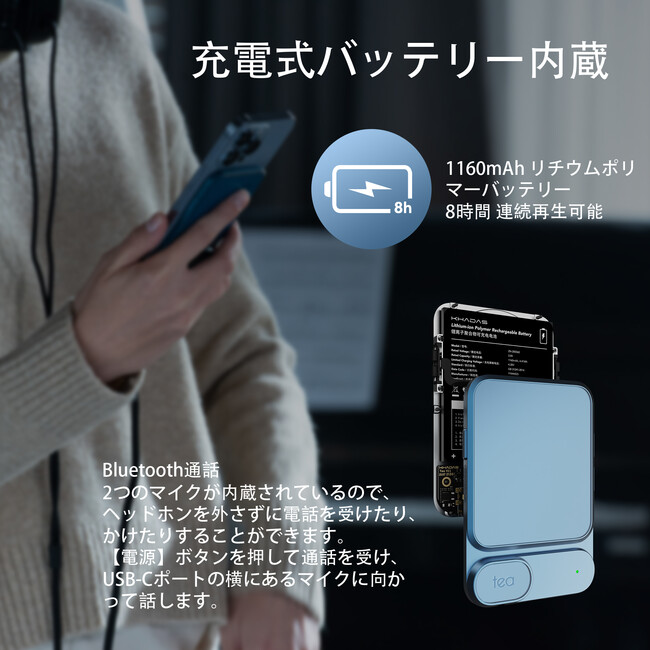 Khadas Tea---MagSafe対応超薄型ポータブル式DACアンプ日本TELEC技術認証、Apple製品と互換性を保証する「MFI認証」も得ているため、iPhoneとの有線接続にも正式対応!Bluetoothにも対応、マイク付きでポータブル式アンプ。
