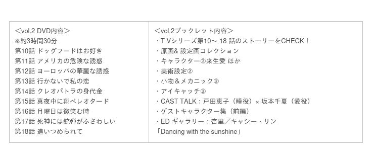 なお、現在発売中のvol.2ブックレットには、瞳役の声優・戸田恵子と愛役の声優・坂本千夏のスペシャル対談を掲載。今は亡き泪役の藤田淑子との思い出話や、2019年公開の『劇場版シティーハンター〈新宿プライベート・アイズ〉』のゲスト出演など、貴重なエピソードの数々は必読です。