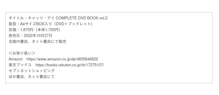 『キャッツ・アイ COMPLETE DVD BOOK』