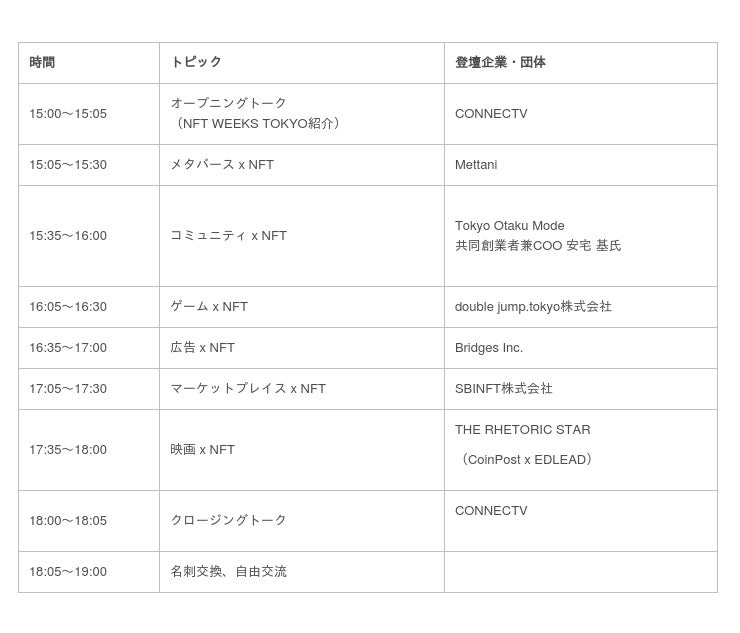 ▼「NFT WEEKS TOKYO」への取材や問い合わせ先