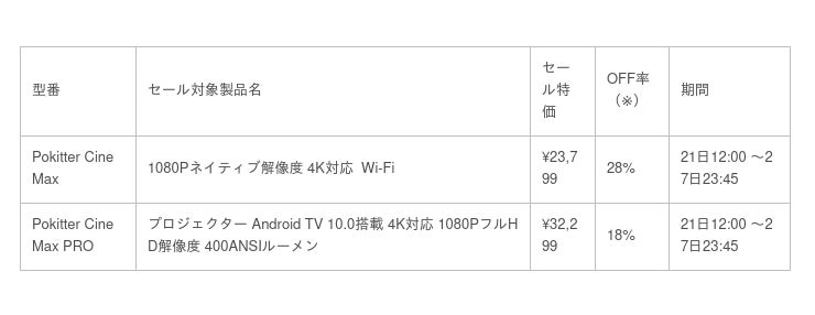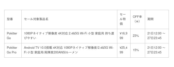 Pokitter年間最大の格安セール「ブラックフライデーセール」の開催シーズン!今年も人気のPokitter製品を最大20%OFFにてご提供です。 看板商品のプロジェクター、セラミックヒーター、加湿器には新商品が登場!この機会にぜひPokitterでのお買い物をお楽しみください。