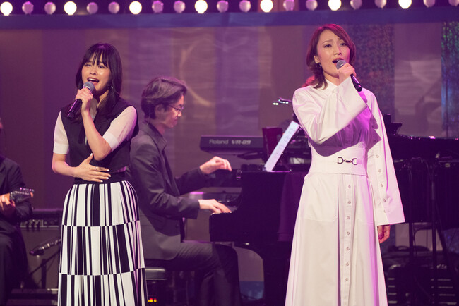 ミュージックショーのコーナーでは、井上芳雄が昨年に逝去したミュージカル界の巨匠、スティーヴン・ソンドハイムが手掛けたミュージカル『カンパニー』より「Being Alive」を披露。バーブラ・ストライサンドが自身のアルバムで歌唱しているバージョンの歌唱に井上は、「転調があって難しいんですよ。でもいい曲ですよね。バンドの皆さんも一生懸命に演奏してくださいました」とコメント。放送翌日が命日となるソンドハイムに捧げる井上の歌唱をともにご堪能いただきたい。さらに望海風斗と昆夏美はミュージカル『CHESS』より「I Know Him So Well」を披露。「だいもんさん(望海風斗の愛称)とご一緒出来るなんて…本当に嬉しいです!」と憧れの存在である望海との共演に喜びを表現した昆。望海は「昆ちゃんの歌を間近で聴けて、学べたことがいっぱいあったので、またぜひ違う歌でご一緒出来るように精進したいと思います」とコメント。二人による珠玉のデュエットをぜひ、ご堪能いただきたい。