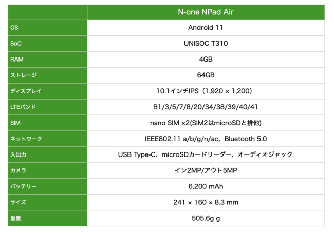 N-one「NPad Air」タブレットは、8mmという驚異的な小型ボディで、重量はわずか500g。高質感あるメタルボディデザインにより、耐久性と携帯性を備えています。解像度1920×1200 FHDの10.1インチテクノロジーIPSディスプレイを搭載しています。