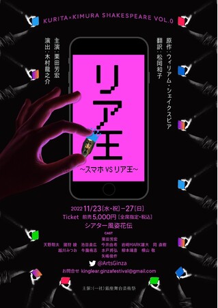 一般社団法人銀座舞台芸術祭(代表理事 石本千明)では、KURITA×KIMURA SHAKESPEARE Vol.0 舞台「リア王〜スマホ VS リア王〜」の11月23日(水)からの上演に向けて、演出:木村龍之介 × 主演:栗田芳宏の特別対談を公開することと致しましたので、お知らせいたします。