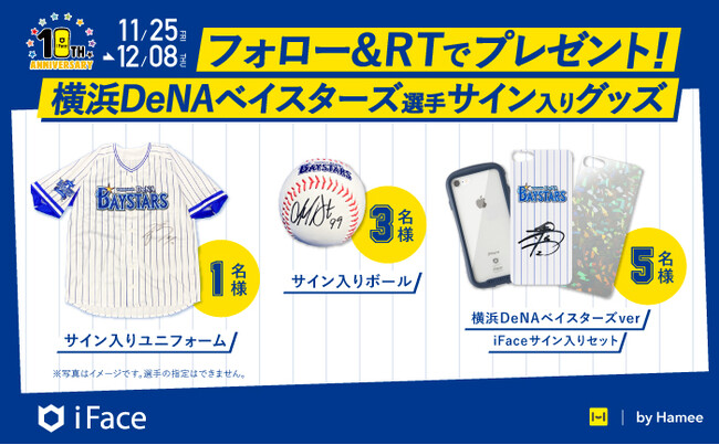 スマートフォングッズの商品開発、及び通販サイトを運営するHamee(ハミィ)株式会社(本社:神奈川県小田原市、代表取締役社長:水島 育大、証券コード:東証プライム3134)は、世界累計販売数2,500万個(2022年3月末時点)、今年2月に日本上陸10周年を迎えたスマホアクセサリーブランド「iFace(アイフェイス)」の公式Twitterにて、横浜DeNAベイスターズ選手のサイン入りアイテムが抽選で合計9名様に当たるプレゼントキャンペーンを2022年11月25日(金)〜12月8日(木)まで実施します。