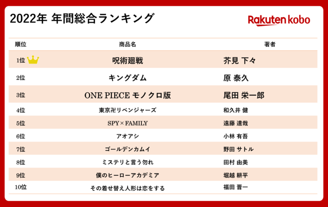 ・「楽天Kobo電子書籍ストア」2022年 年間総合ランキング