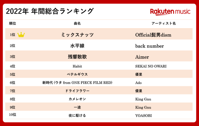 ・「Rakuten Music」2022年 年間総合ランキング: https://music.rakuten.co.jp/news/award/seasonal/2022/year/