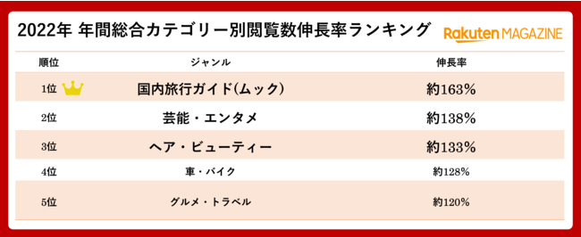 ・「楽天マガジン」2022年 年間総合カテゴリー別閲覧数伸長率ランキング